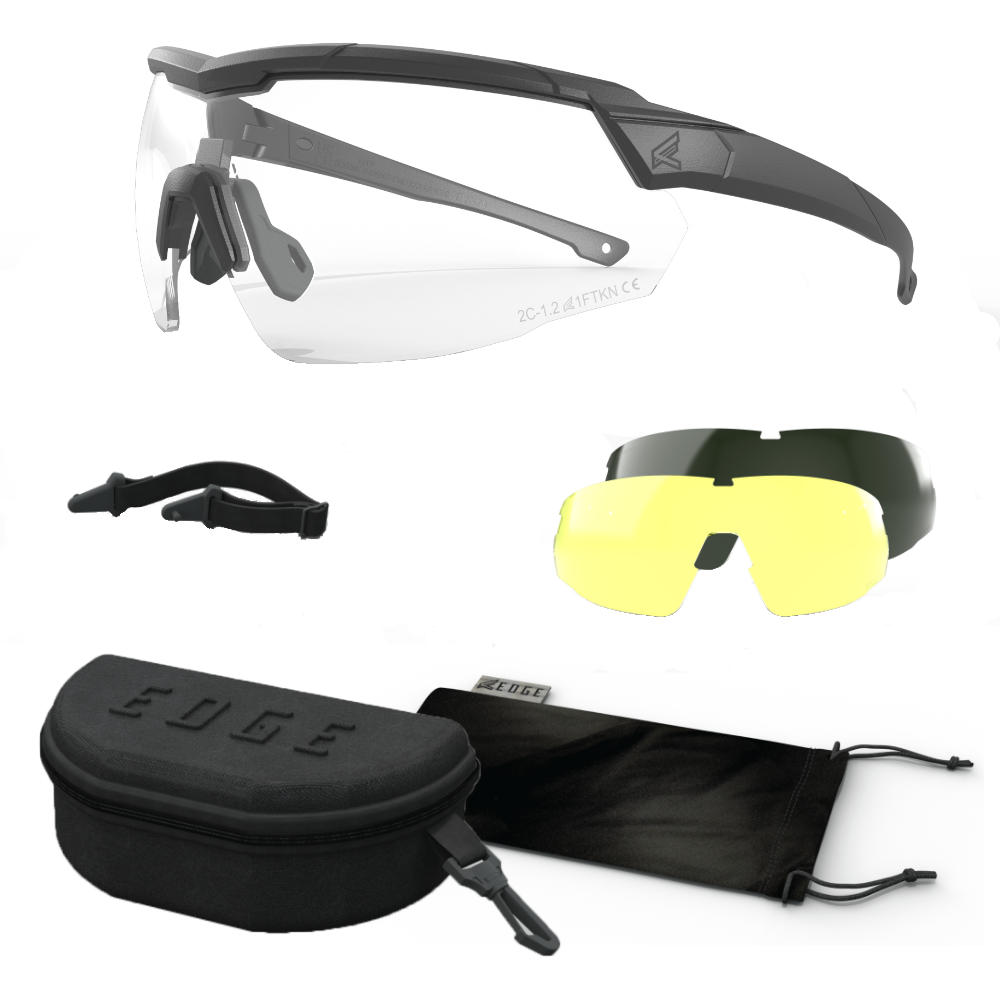 Taktické Okuliare Edge Rolling Thunder Adjustable KIT BLACK sú taktické ochranné okuliare Rolling Thunder v trojdielnom kite so zameniteľnými zorníkmi: G15 (~15 % VLT) na ostré denné svetlo, Yellow na zvýšený kontrast v šere a pod mrakom a Clear (~85 % VLT) do interiéru a na prácu pri slabšom svetle. Trvalá anti-fog technológia Vapor Shield je integrovaná priamo v zorníkoch, takže odoláva zahmlievaniu v teple, chlade aj vysokej vlhkosti. Rám má teleskopické (nastaviteľné) tenké nožičky, integrovaný brow-guard a nastaviteľný nosník pre presné, komfortné usadenie.